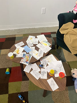 In-Between brings together a collection of new and existing artworks by Rachael Grad, culminating her Feminist Mothering practice. Through a series of sketchbook drawings, paintings, assemblage, and by traversing borders to cross over into the digital world, In- Between asks visitors to partake in the practice of play and view works closely through a simulated virtual reality experience. To play is to feel free. The art studio is a place where one can playfully invent oneself. When a Mother plays, she is the creative subject.